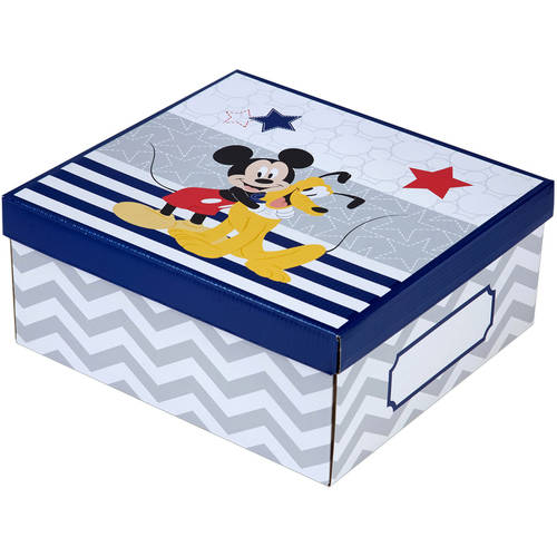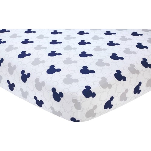 The Disney Let's Go Mickey II 4-Piece Crib Bedding Set features Mickey Mouse and his plucky pal Pluto. It is made with a baby's comfortable in mind. This bedding accessory has bold and bright colors and America's favorite mouse, Mickey. The shades of gray with pops of yellow, red and navy match many design styles. This Mickey Mouse crib bedding includes a comforter, fitted sheet, crib skirt and a keepsake box with a lid. The linens fit a standard 28" x 52" crib mattress. This Disney crib bedding set is made with 100-percent polyester microfiber. It coordinates with a full line of nursery decor and accessories. Make your child smile at the sight of the Disney Let's Go Mickey II 4-Piece Crib Bedding Set.