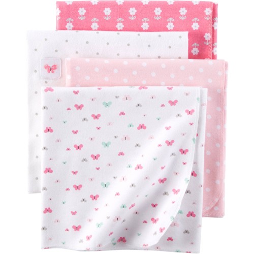 • Child of Mine Newborn Baby Flannel Receiving Blanket, 4pk, Pink: